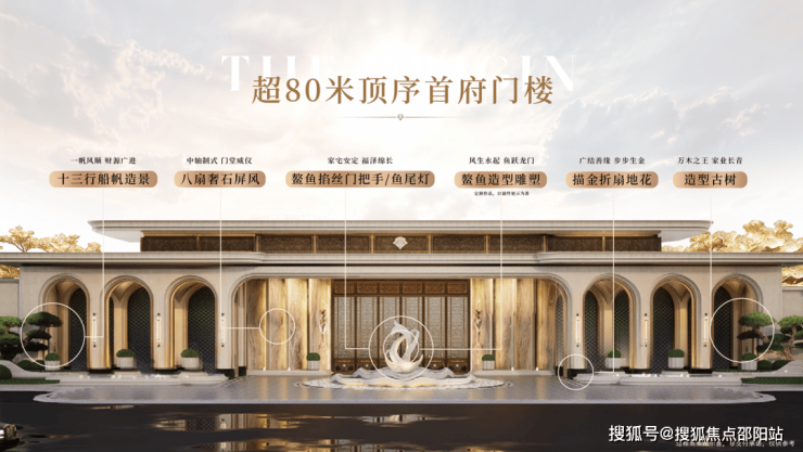 横跨80米、纵高13米的上亿奢宅大门营造超尺度视觉震撼,中西兼容的门第仪制,彰显对百年首府花园的致敬与回归,同时给予业主直观的体量感、尊崇感与文化感。