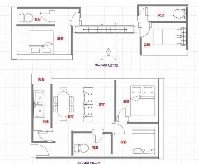 96㎡4房3卫