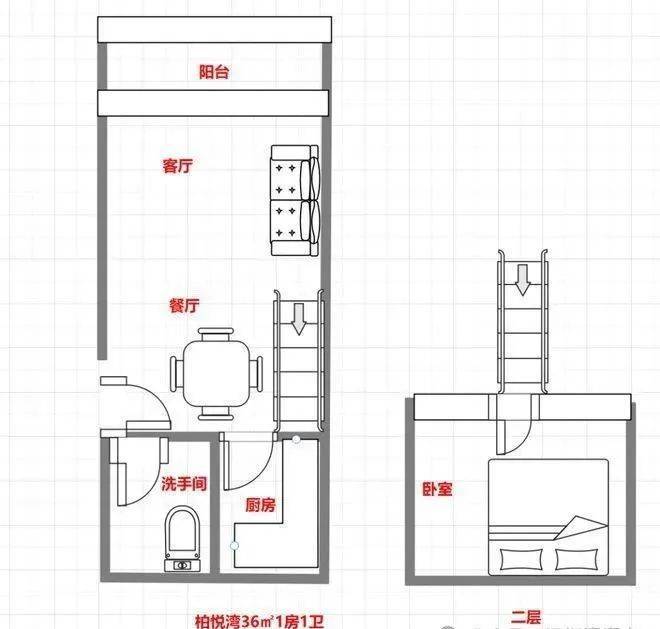36㎡1房2庁1卫户型图