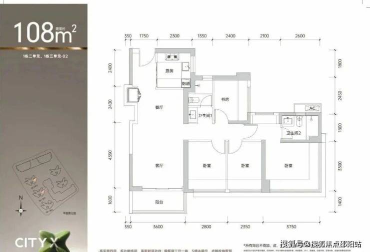 108㎡的4房2厅2卫,1栋2/3单元02/1栋1单元06户型,设计的是经典竖厅格局,进门入户玄关,客厅3.6米开间,LDKB一体化,S墙设计预留冰箱卡槽位,四开间朝南,动静分区,4个卧室分别做到了主卧16.2㎡/次卧9.24㎡/次卧7.76㎡/次卧7.32㎡(包含墙体飘窗),U型厨房,公卫三段式分离,得房率约90%(包含赠送),东南或西南朝向。