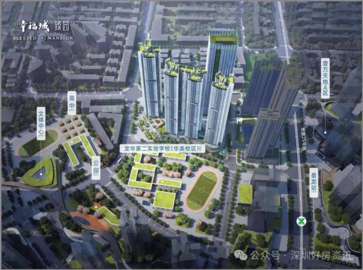 幸福城臻园位于龙华区龙华街道龙华人民路与景龙建设路交汇处西南侧,分 2 个地块开发。与鸿荣源壹方天地购物中心A区仅一路之隔,属于龙华商业中心城市更新单元北片区,是龙华商业中心城市更新北片区的重要组成部分。