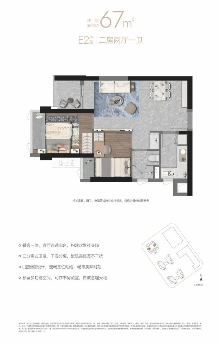 【E2户型67㎡二房两厅一卫】