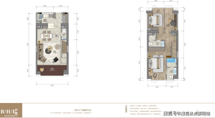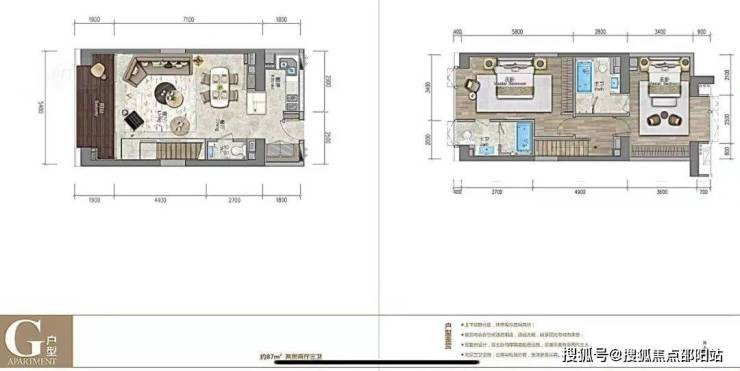 ★88㎡复式两房两厅三卫 双向通透采光,5.4米开间客厅及主卧,双套房周全设计,室内多变空间可根据家庭需要设置独特的功能。