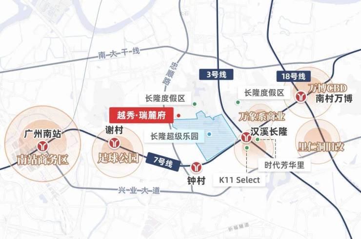 项目紧挨长隆动物世界的西南侧,西侧靠近钟顺路,距离万博CBD大概5公里左右,开车10分钟左右可以抵达。