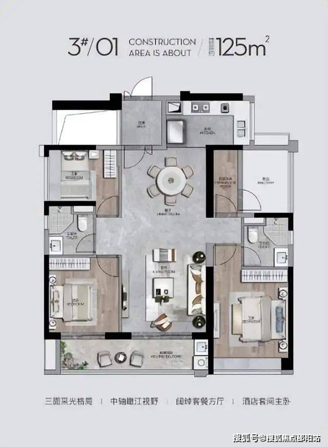 西派澜岸的户型设计充分考虑到高端居住者的需求,采用了大面积开阔的空间布局。项目提供从约105㎡到125㎡的高端三至四房户型,采用南北通透设计,确保每一户都能享受充足的自然采光。每一套住宅都可欣赏到极致的江景与绿地景观,推窗即见自然美景。此外,项目还为业主配备智能化系统,并配有精致的公共设施,如泳池、健身房等,进一步提升居住体验。