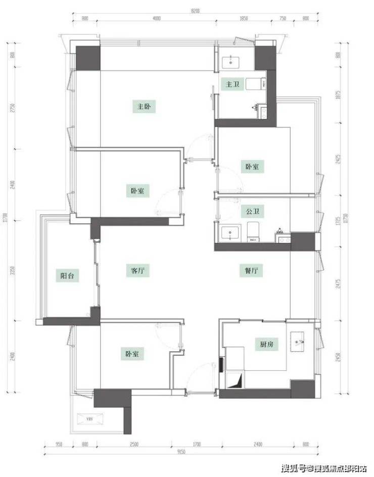 建面约93平户型,高实用率,在功能上做到了4房2厅2卫,在舒适度上做到了4开间朝南、约11.7米采光面、双飘窗全明主卧,完全能满足一步到位的置业需求。