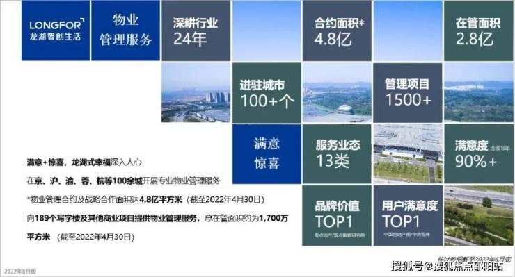 十、【中国豪宅管理专家——“龙湖物业”】涛汇 × 龙湖物业 让尊享成为日常鎏金湾·瑞府联袂世界500强龙湖集团旗下的龙湖物业,引进为本项目全生命周期物业服务团队,配置龙湖除别墅业态外最顶尖的物业服务团队——“尊享+”级;龙湖物业为中国一级品牌物业,有“豪宅管理专家”的美誉。用“满意+惊喜”诠释龙湖式幸福,连续13年品牌满意度90%以上,超4500条服务标准累计服务逾350万户业主,以贴心与细心,筑造美好智慧生活。