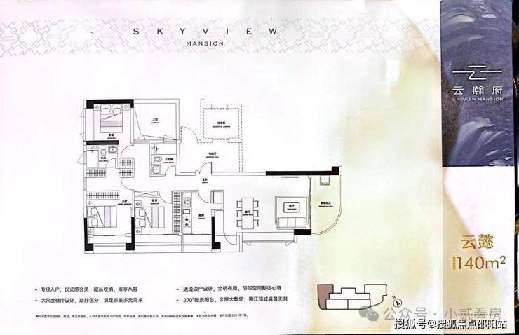 140㎡南向4房2厅2卫:六开间超南,超17米南向面宽,四面采光单边户