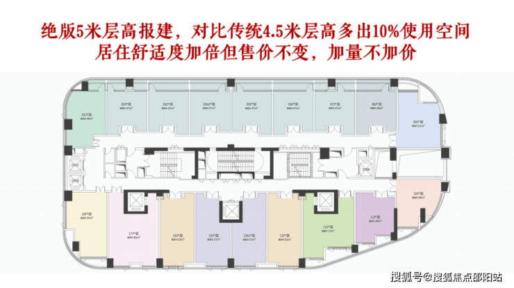 公寓主推6-9楼,5米层高46-85㎡loft公寓。