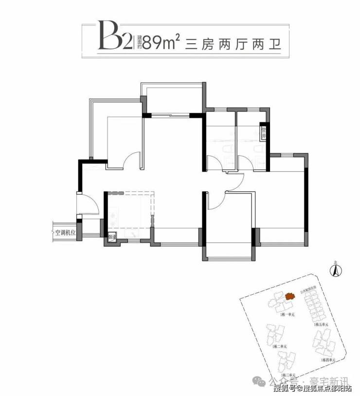 二:建面约89平方B1B2户型三房两厅两卫
