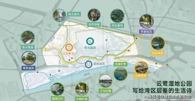 整个公园打造3大主题岛屿、3大游径,串联湿地博物馆、湿地栈道、果基鱼塘、游船码头、云鹭市集、亲子乐园、城市营地等 12 个游玩打卡点,将是家门口集自然+休闲+科教+研学+游憩等多元一体的沉浸式公园体验。