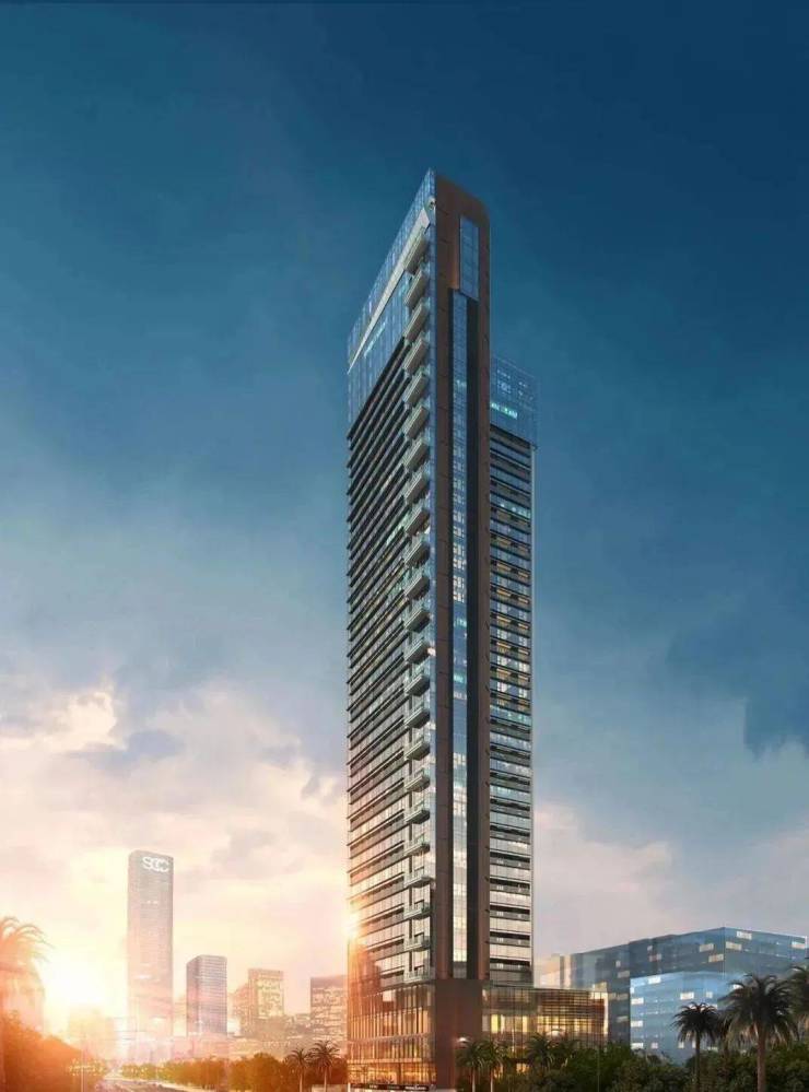 其以建筑美学诠释生活美学,作为 150 米人居地标,傲占山海盛境。历经国际设计团队 AECOM 七轮方案调整,确定为特色 L 型建筑,高 150 米屹立深圳湾,周边景观丰富,一湾繁华、山海盛境皆为业主窗前日常风光。