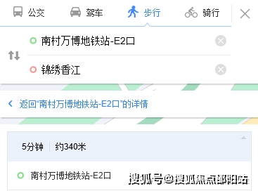 百度地图显示,从地铁18号线南村万博站E2出口出来,步行约5分钟即可到达项目。