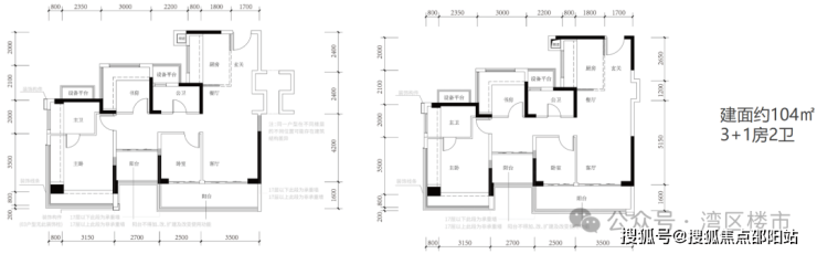 •推售户型:建筑面积约104㎡、120㎡
