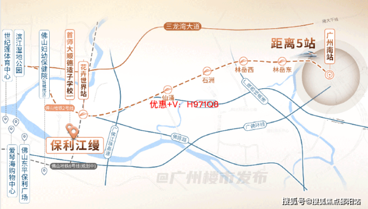 佛山2号线贯穿整个板块,设置花卉世界站和登洲站,串联禅城、三山与广州南站,一轨直通两城,出入便捷。