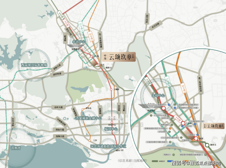 项目位于龙华区民治街道新区大道与金龙路交汇处东南侧,地处深港科创中轴与城市生态绿脉的唯一交汇处。