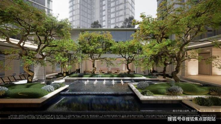酒店式阳光车库+林下悬浮度假泳池+迎宾庭院 +浮岛庭院双庭院,