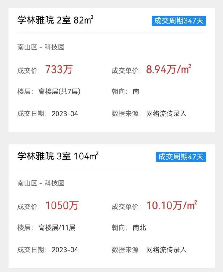 学林雅院的业主挂牌单价普遍在9万/平左右,历史成交单价在8.94-10.1万/平,22年高峰时期成交单价去到了11万/平。