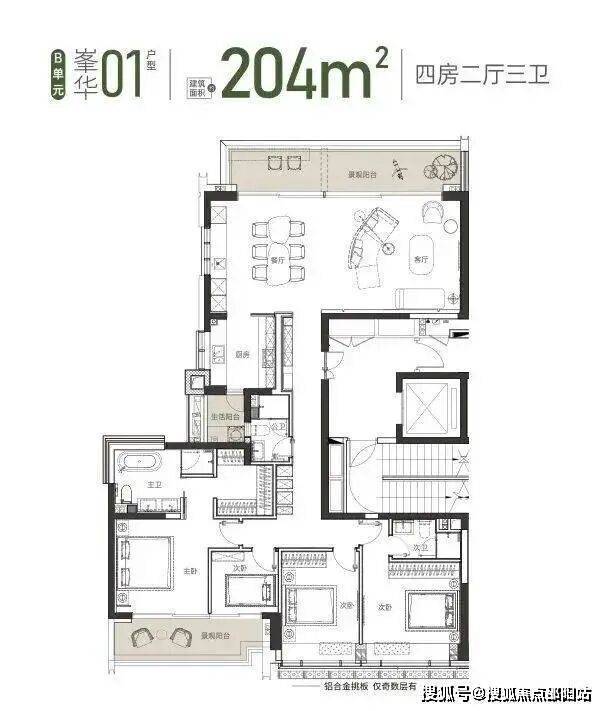 建面约 204 ㎡ 01户型 4房2厅2卫