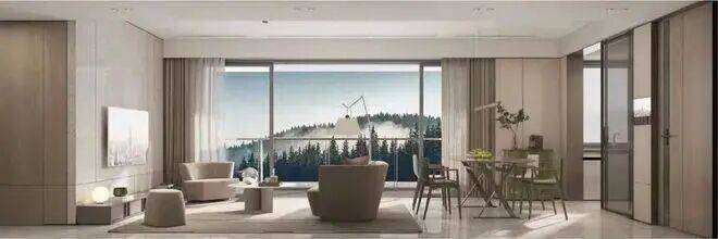 舒阔空间:户户向南、看山无遮挡宽阔户型 专梯入户/2梯3户舒适梯户比,宽阔横厅,延伸城山的边界,每扇窗户外都是山。3.6米超高层高,重新定义家的高度。