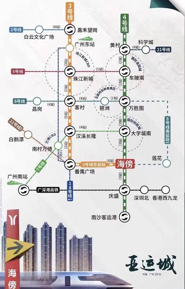 4号线——3站庆盛站,3站直达大学城6站琶洲,7站直达天河,执城市黄金主脉