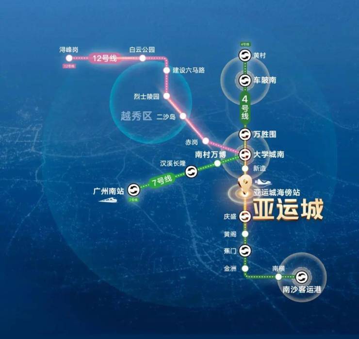 番禺广场无缝接驳18号线/22号线执掌番禺2大商务区、速达天河/荔湾CBD3号线始发站1线直达珠江新城,4站达番禺广场TOD接驳18号线5站达南村万博CBD接驳22号线畅达荔湾核心城区