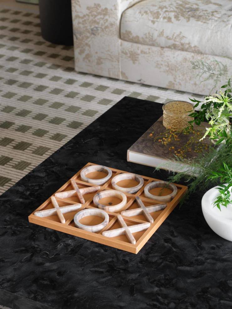 Armani地毯作为标志性装饰,为整个空间增添了雅致底色,新款Armani Planet圆桌的融入,使空间更具灵活性。Lawrence大小圆座的摆放既美观又舒适。