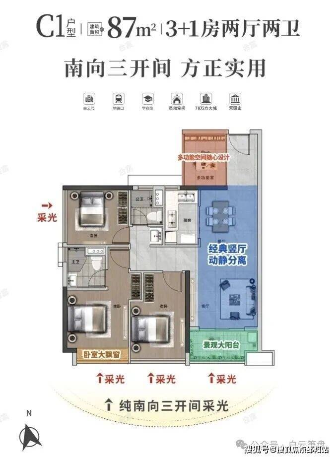 建面约87㎡丨南向四房带主套