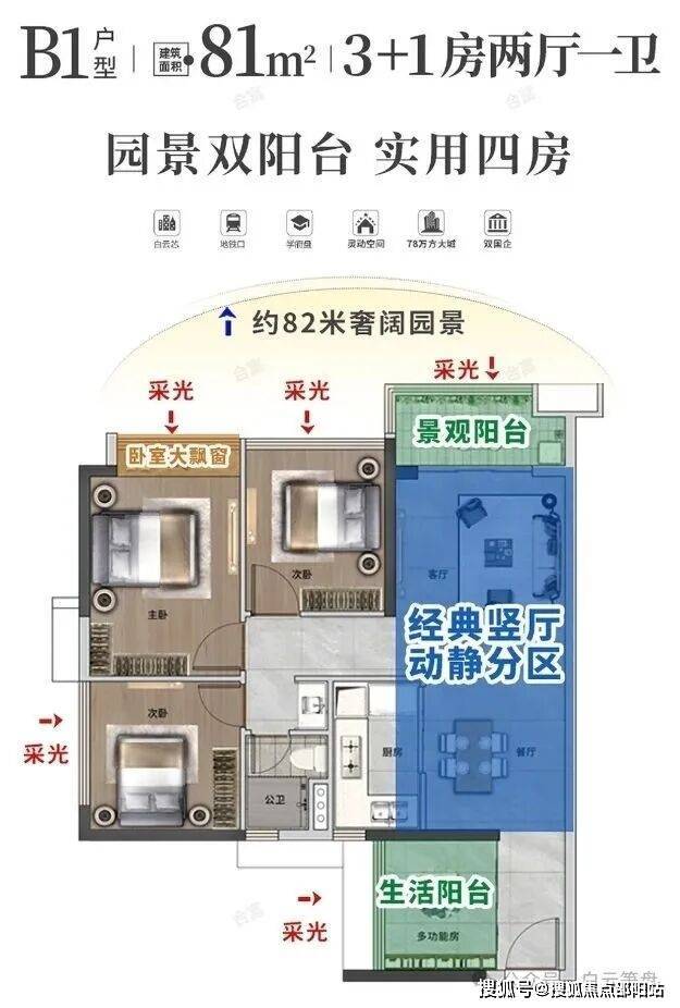 建面约81㎡丨园景四房