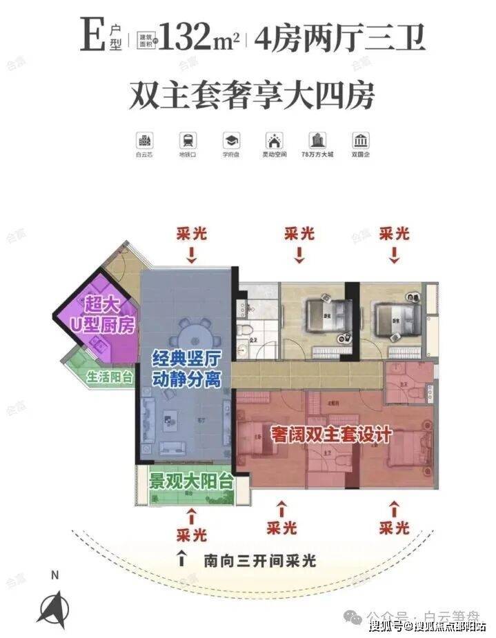 建面约132㎡丨南北对流双主套四房