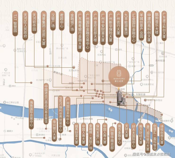 项目坐落于金融城东区 AT091434 地块,处于珠江新城与金融城双 CBD 联动核心,周边 80% 土地集聚金融总部、数字经济等国家级战略资源,已吸引 28 家世界 500 强企业进驻。距珠江最近处仅 120 米,坐拥南向一线江景,最大江景面达 800 米,江、城双景尽收眼底。随着临江大道全线通车,驾车 8 分钟可达珠江新城,10 分钟直达广州南站,20 分钟衔接白云机场,配合地下隧道环路系统,构建 “空铁联运” 的超级交通网络。