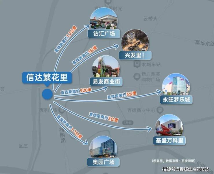 (直线距离,数据来源:百度地图)