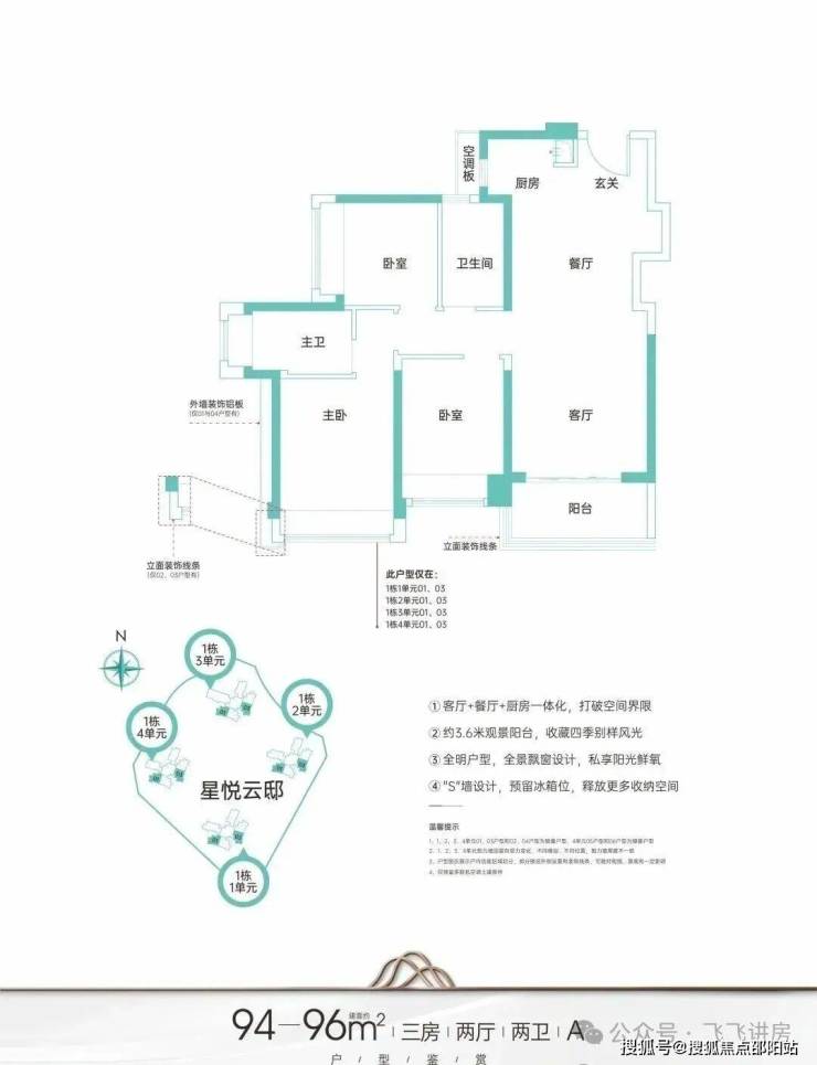 100㎡3房2卫,开盘折后单价3.99万/㎡-4.29万/㎡,折后总价399-429万