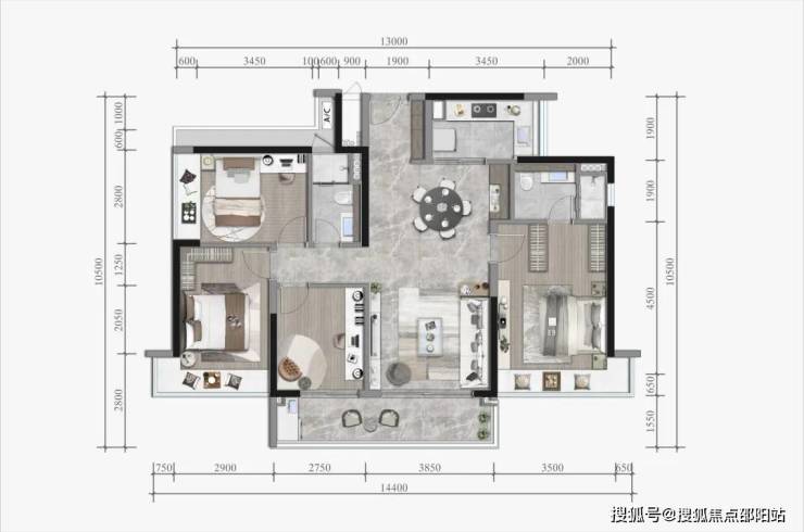 建面约143㎡三套间四房:
