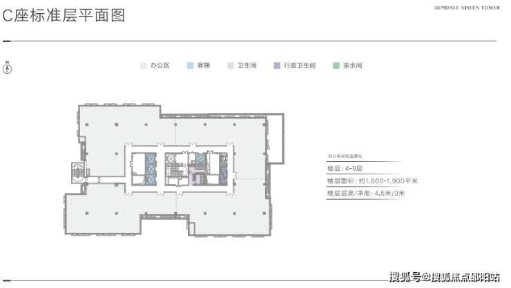 标准层面积:A/B座2400㎡-2700㎡ ,C座1800㎡-1900㎡(约1.2万平,整栋出租)