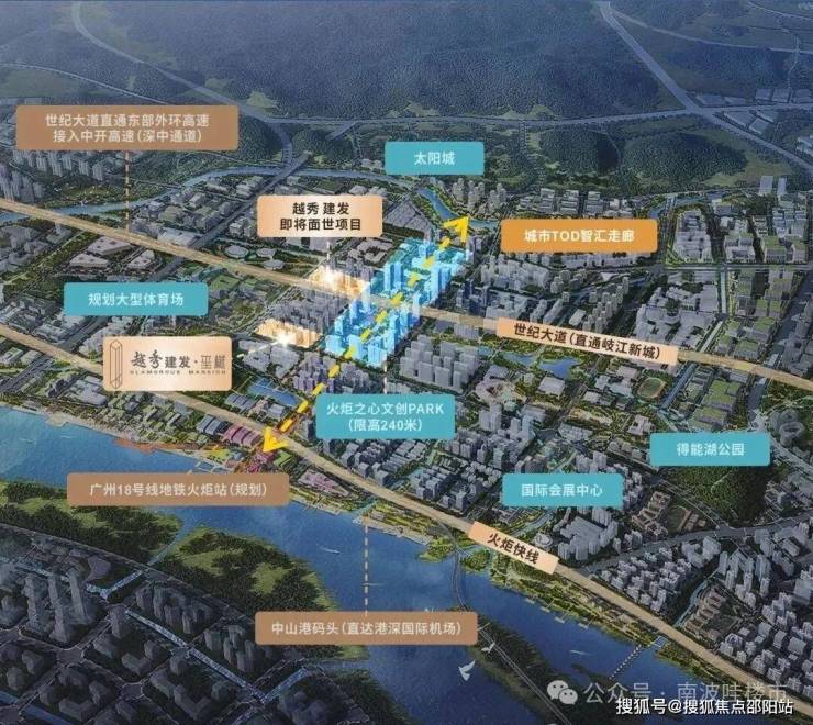 越秀·建发玺樾是由越秀和建发双国企联手打造的高端住宅,是公认火炬区的尖货红盘。越秀建发玺樾最大亮点绝对是区域优势。项目是距离南中城际火炬站最近的项目,直接线距离仅约500米,而且与火炬中心地标群仅一墙之隔。