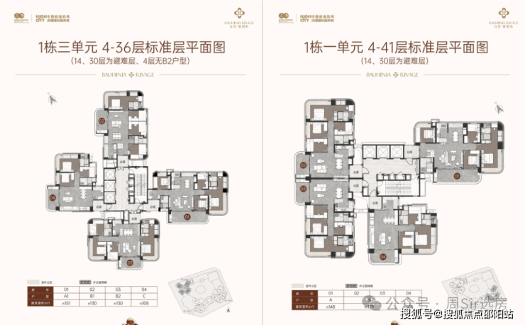 户型对比前一期紫荆府的差异就是没有追求一梯一户的布局,电梯厅采用传统布局,但是保留了每户入户前的独立公共空间。这样的好处就是增加了得房率又兼顾了私密性。