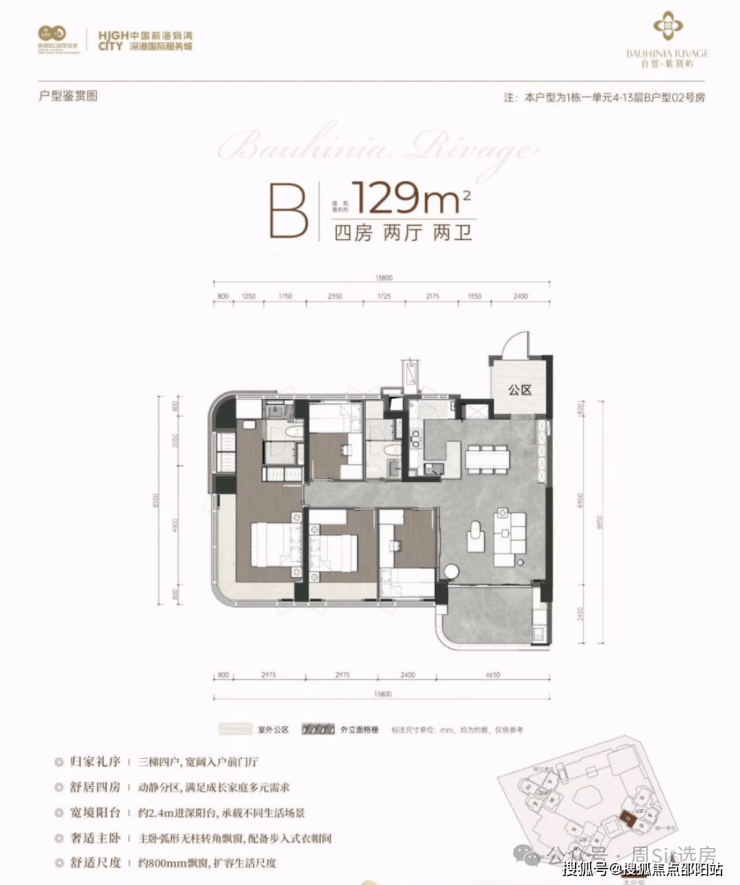 前海妈湾湾啟紫荆府二期(紫荆屿)在2026年4月14日取证入市,本次推出1栋1/2/3单元,面积有108㎡的3房2卫,129-130-148-151㎡的4房2卫户型,共408套房源,合同约定在2028年3月份带精装交房。