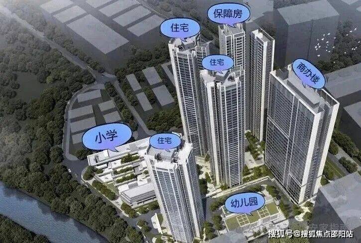 项目共规划5栋超高层建筑,包括3栋33-49F超高层住宅楼,1栋40F保障房,1栋39F写字楼以及1座12班幼儿园、1座18班小学。