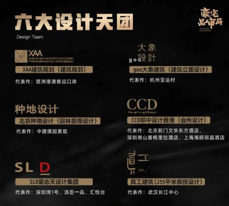 光是设计就邀请XAA洗剑雄、GOA大象设计、CCD郑中设计、SLD梁志天、种地景观、真工建筑等六大国际知名团队担纲。