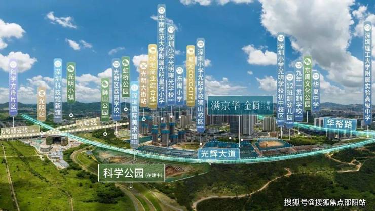 光明中心区科学公园内目前体量最大的新盘、科学公园头排的满京华狮山项目,相当值得关注。这是一个近百万方的综合体大城,集高端住宅、商业、办公于一体。