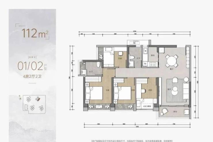135平的大4房则是做了横厅设计