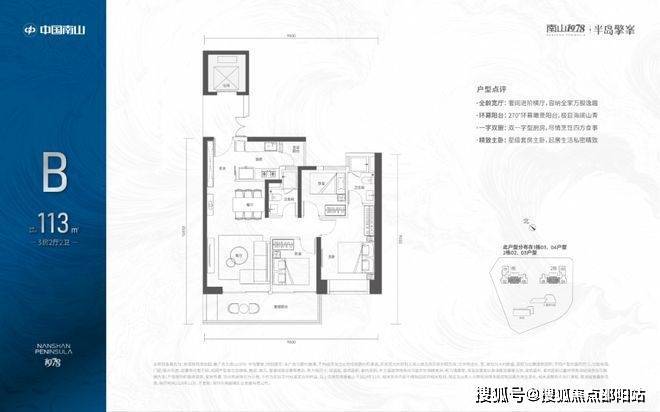 113㎡的3房2厅2卫,设计的是竖厅格局,电梯入户送独立公区,LDKB一体化设计,动静分区,三开间朝南,客厅连接次卧出超大观景阳台,主卧大套间设计,二字型厨房带1个小生活阳台,卫生间干湿分离,得房率:72.07%(不含赠送),西南朝向。