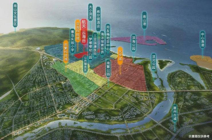 三亚崖州湾科技城由“一港、三城、一基地”组成,即深海科技城、南繁科技城、深海科技城、大学城、南山港和全球动植物种质资源引进中转基地,致力打造成陆海统筹、开放创新、产业繁荣、文化自信、绿色节能的先导科技新城。