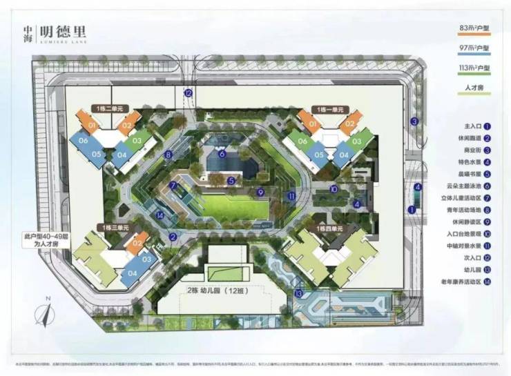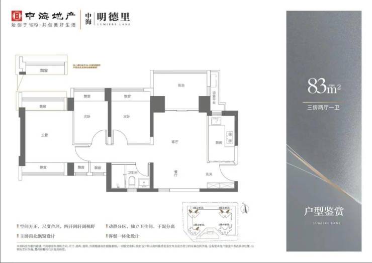 产品面积段:建面约83—113㎡三至四房