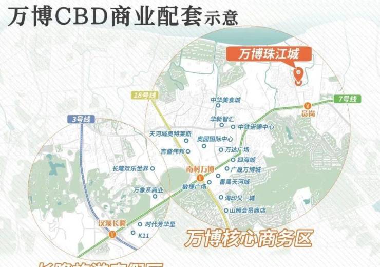 项目临近万博板块,就在珠江边上,距离万博CBD仅2公里距离,旁边就是江山高尔夫俱乐部东侧,这里也可以完美接纳万博外溢客源,小区也属于超级大盘,总共分了7个地块开发,学校、地铁、商业、江景它都有