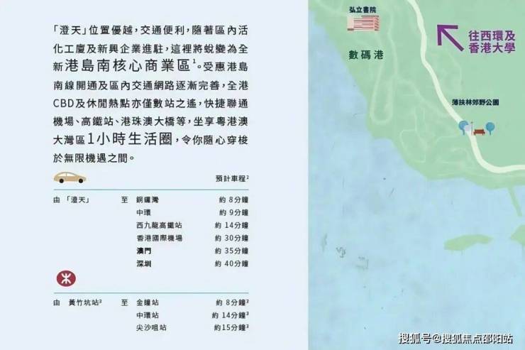 生活圈层:定位中高端改善型住宅,主打 1-3 房,吸引南区分支家庭、中环 / 金钟上班族及跨境投资者。毗邻新加坡国际学校、加拿大国际学校等国际教育资源,兼顾本土与国际教育需求。住户以年轻家庭及港岛东金融、科技行业精英为主,周边东大街食街融合本土与环球餐饮,生活氛围多元。