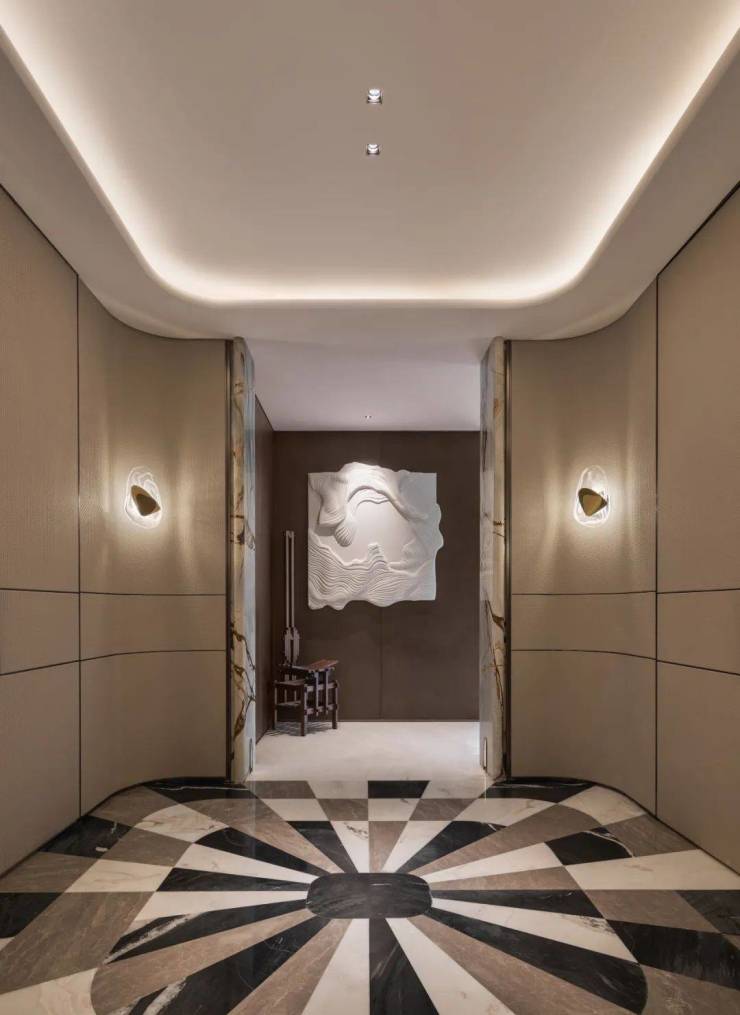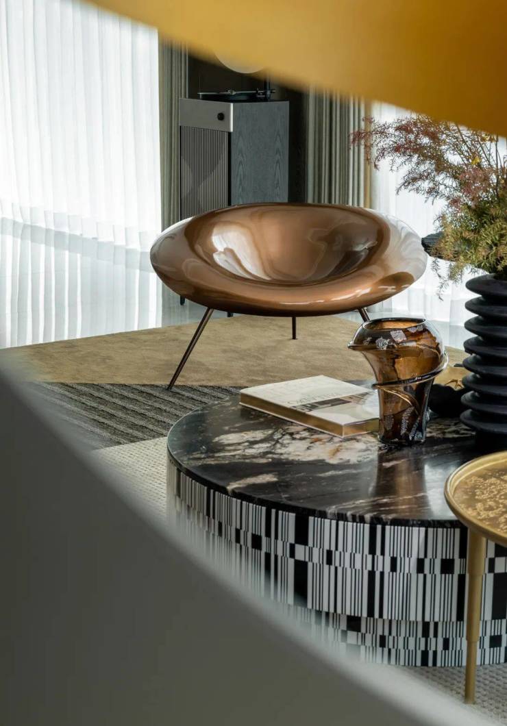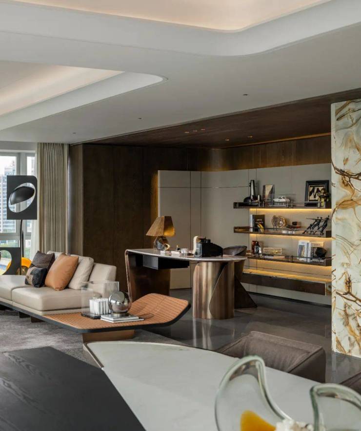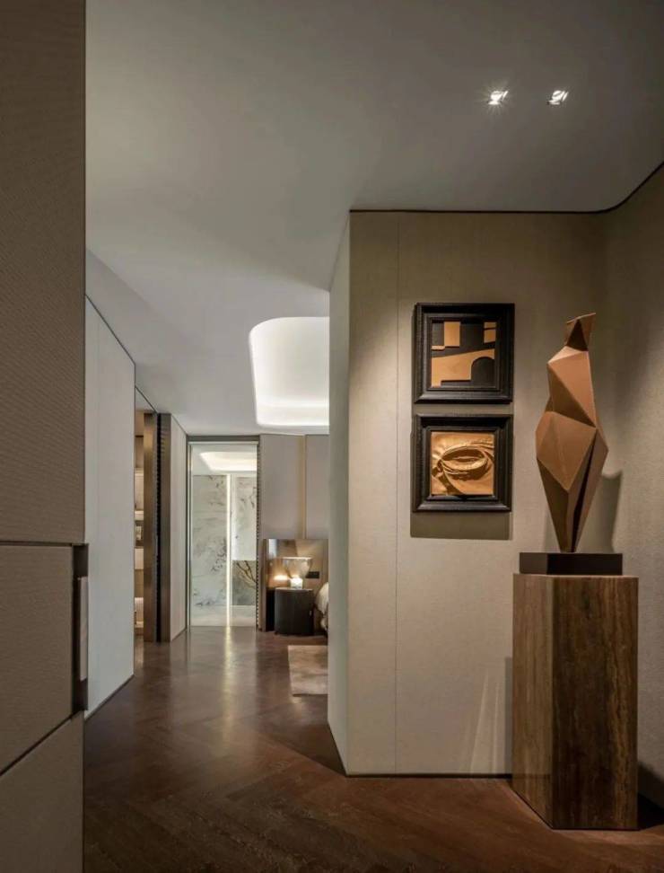 回溯艺术与生活的自由感知,以立体抽象的艺术雕塑引领人们步入静谧栖居之地,暖棕色的沉稳与含蓄,铺陈出低调内敛的空间气韵,如同悠扬的序曲,不经意间蔓延开来,让空间富有层次,散发出生活的美感与新意。