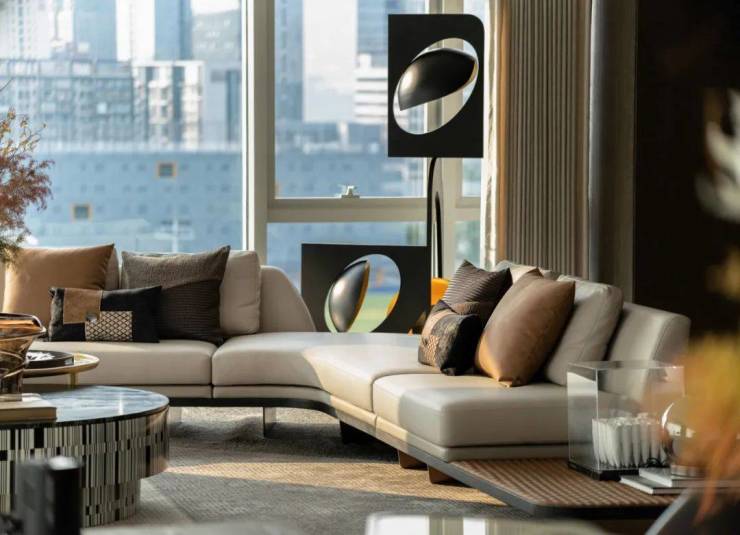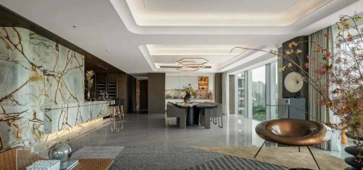 东莞兼容并蓄的城市气质传递出生生不息的生活遐想,招商湾熙中心奢阔的尺度也启迪着都市新贵的浪漫感知。本项目以方正的布局,270度环幕采光,拥揽超大面宽景观,将生活的诗意珍藏于艺术之境,在一方世界中凝练“家”的无尽悠然。