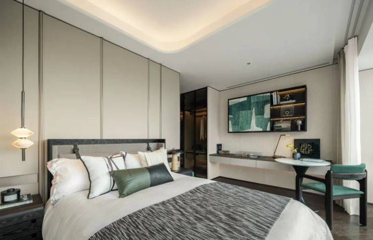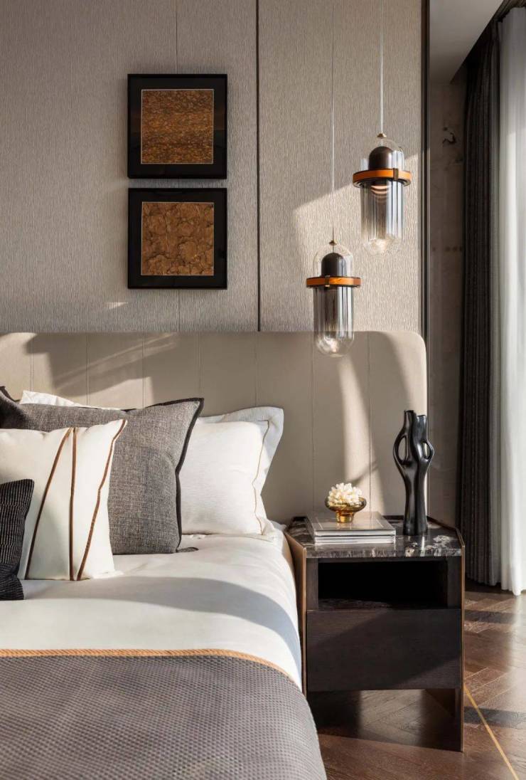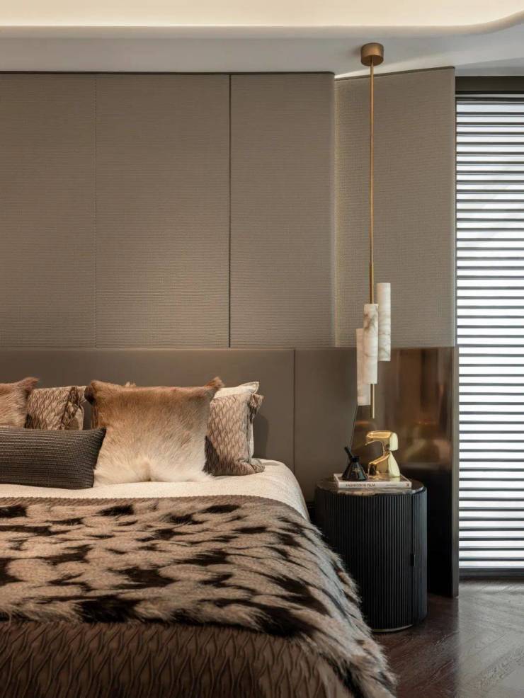优雅由心生,次卧延续了米色与棕色的醇厚基调,以简约的肌理勾勒出精致的细节,塑造出放松、舒适的场域气质。